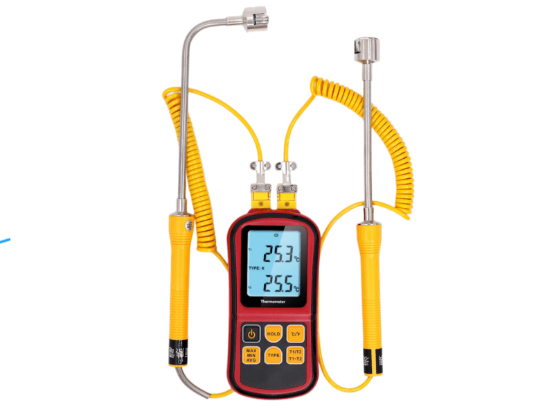 The device is able to measure the temperature of the liquid/ vapours and surface temperature of a solid object, with a considerably wider measuring range than those of mercury thermometer and alcoholmeter. Suitable for both high-temperature fields of blast furnace and cookery and low temperature measuring for liquefied hydrogen and liquefied nitrogen, etc.