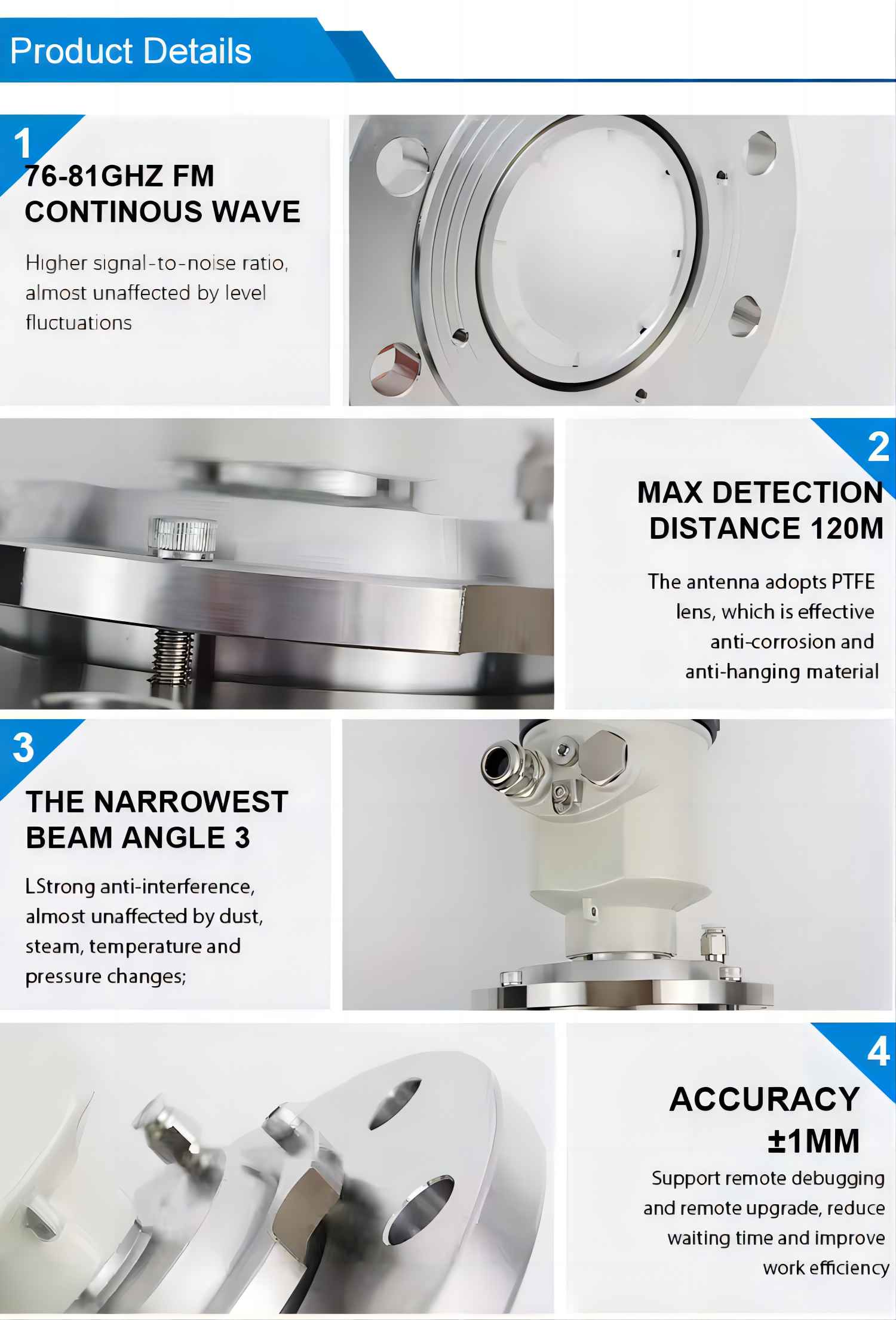High Quality OEM 76-81GHz FM Radar Level Meter 80ghz compact radar level transmitter instructions