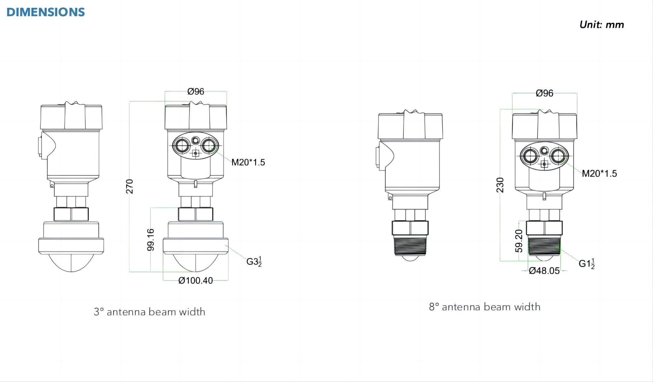 ♦3°antenna beam angle, so the interference in the environment has less impact on the instrument, and the installation is more convenient.