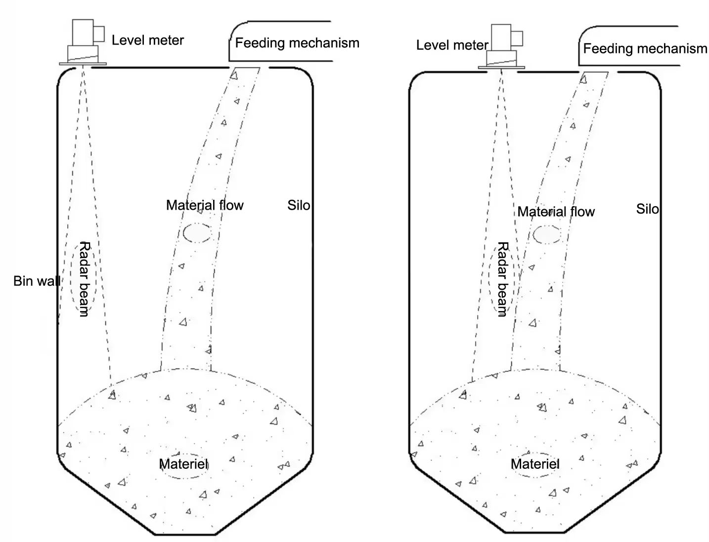 ♦Shorter wavelength yields good reflection properties on sloped solids, so aiming towards material angle of repose is usually not necessary.