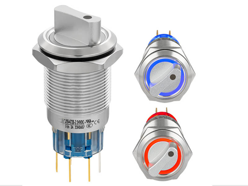 Metal knob selector switch, 2-position and 3-position rotation with light